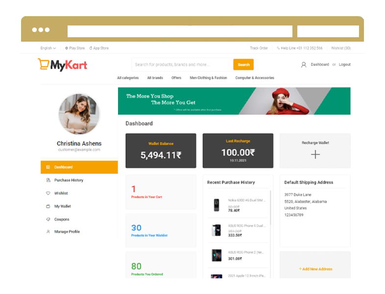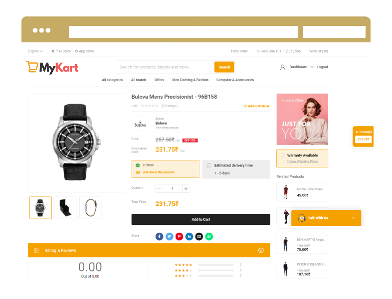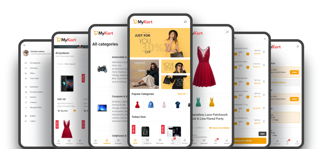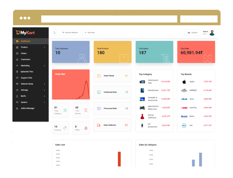 Easily create your E-commerce website with MyKart to showcase your products at their absolute best. MyKart also comes with best in class features to satisfy every business's requirements